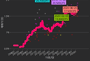 - 하단에 이어지는 거래량 막대차트(bar chart)와 함께 비교해보는 것이 좋습니다.
