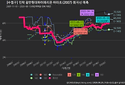 - 하단에 이어지는 거래량 막대차트(bar chart)와 함께 비교해보는 것이 좋습니다.
