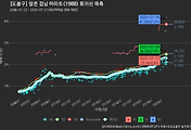 - 하단에 이어지는 거래량 막대차트(bar chart)와 함께 비교해보는 것이 좋습니다.