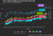 - 하단에 이어지는 거래량 막대차트(bar chart)와 함께 비교해보는 것이 좋습니다.