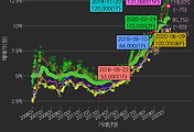 - 하단에 이어지는 거래량 막대차트(bar chart)와 함께 비교해보는 것이 좋습니다.