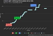 - 하단에 이어지는 거래량 막대차트(bar chart)와 함께 비교해보는 것이 좋습니다.