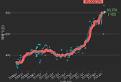 - 하단에 이어지는 거래량 막대차트(bar chart)와 함께 비교해보는 것이 좋습니다.