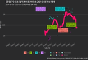 - 하단에 이어지는 거래량 막대차트(bar chart)와 함께 비교해보는 것이 좋습니다.