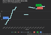 - 하단에 이어지는 거래량 막대차트(bar chart)와 함께 비교해보는 것이 좋습니다.