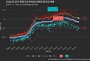 - 하단에 이어지는 거래량 막대차트(bar chart)와 함께 비교해보는 것이 좋습니다.