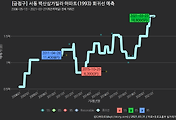 - 하단에 이어지는 거래량 막대차트(bar chart)와 함께 비교해보는 것이 좋습니다.
