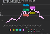 - 하단에 이어지는 거래량 막대차트(bar chart)와 함께 비교해보는 것이 좋습니다.
