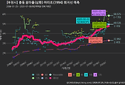 - 하단에 이어지는 거래량 막대차트(bar chart)와 함께 비교해보는 것이 좋습니다.
