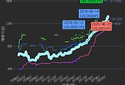 - 하단에 이어지는 거래량 막대차트(bar chart)와 함께 비교해보는 것이 좋습니다.