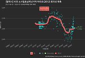 - 하단에 이어지는 거래량 막대차트(bar chart)와 함께 비교해보는 것이 좋습니다.