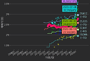 - 하단에 이어지는 거래량 막대차트(bar chart)와 함께 비교해보는 것이 좋습니다.