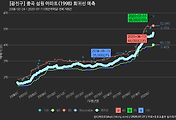 - 하단에 이어지는 거래량 막대차트(bar chart)와 함께 비교해보는 것이 좋습니다.