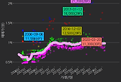 - 하단에 이어지는 거래량 막대차트(bar chart)와 함께 비교해보는 것이 좋습니다.