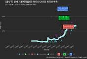 - 하단에 이어지는 거래량 막대차트(bar chart)와 함께 비교해보는 것이 좋습니다.