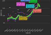 - 하단에 이어지는 거래량 막대차트(bar chart)와 함께 비교해보는 것이 좋습니다.
