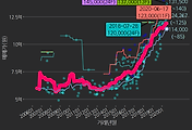 - 하단에 이어지는 거래량 막대차트(bar chart)와 함께 비교해보는 것이 좋습니다.