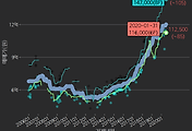 - 하단에 이어지는 거래량 막대차트(bar chart)와 함께 비교해보는 것이 좋습니다.