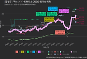 - 하단에 이어지는 거래량 막대차트(bar chart)와 함께 비교해보는 것이 좋습니다.