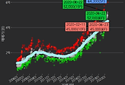 - 하단에 이어지는 거래량 막대차트(bar chart)와 함께 비교해보는 것이 좋습니다.
