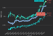 - 하단에 이어지는 거래량 막대차트(bar chart)와 함께 비교해보는 것이 좋습니다.