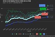 - 하단에 이어지는 거래량 막대차트(bar chart)와 함께 비교해보는 것이 좋습니다.