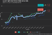 - 하단에 이어지는 거래량 막대차트(bar chart)와 함께 비교해보는 것이 좋습니다.