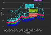 - 하단에 이어지는 거래량 막대차트(bar chart)와 함께 비교해보는 것이 좋습니다.