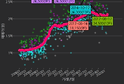 - 하단에 이어지는 거래량 막대차트(bar chart)와 함께 비교해보는 것이 좋습니다.