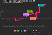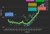 - 하단에 이어지는 거래량 막대차트(bar chart)와 함께 비교해보는 것이 좋습니다.