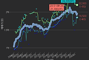 - 하단에 이어지는 거래량 막대차트(bar chart)와 함께 비교해보는 것이 좋습니다.