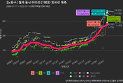 - 하단에 이어지는 거래량 막대차트(bar chart)와 함께 비교해보는 것이 좋습니다.