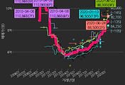 - 하단에 이어지는 거래량 막대차트(bar chart)와 함께 비교해보는 것이 좋습니다.