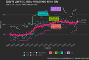 - 하단에 이어지는 거래량 막대차트(bar chart)와 함께 비교해보는 것이 좋습니다.