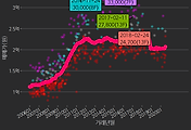 - 하단에 이어지는 거래량 막대차트(bar chart)와 함께 비교해보는 것이 좋습니다.