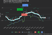 - 하단에 이어지는 거래량 막대차트(bar chart)와 함께 비교해보는 것이 좋습니다.