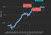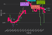 - 하단에 이어지는 거래량 막대차트(bar chart)와 함께 비교해보는 것이 좋습니다.