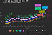 - 하단에 이어지는 거래량 막대차트(bar chart)와 함께 비교해보는 것이 좋습니다.