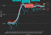 - 하단에 이어지는 거래량 막대차트(bar chart)와 함께 비교해보는 것이 좋습니다.