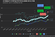 - 하단에 이어지는 거래량 막대차트(bar chart)와 함께 비교해보는 것이 좋습니다.