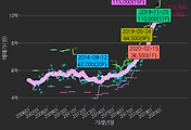 - 하단에 이어지는 거래량 막대차트(bar chart)와 함께 비교해보는 것이 좋습니다.