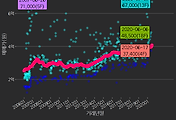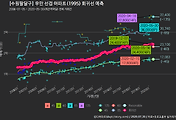 - 하단에 이어지는 거래량 막대차트(bar chart)와 함께 비교해보는 것이 좋습니다.