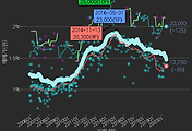 - 하단에 이어지는 거래량 막대차트(bar chart)와 함께 비교해보는 것이 좋습니다.