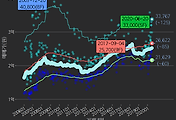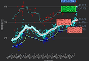 - 하단에 이어지는 거래량 막대차트(bar chart)와 함께 비교해보는 것이 좋습니다.