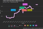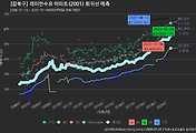 - 하단에 이어지는 거래량 막대차트(bar chart)와 함께 비교해보는 것이 좋습니다.