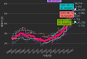 - 하단에 이어지는 거래량 막대차트(bar chart)와 함께 비교해보는 것이 좋습니다.