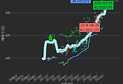 - 하단에 이어지는 거래량 막대차트(bar chart)와 함께 비교해보는 것이 좋습니다.