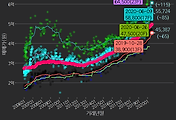- 하단에 이어지는 거래량 막대차트(bar chart)와 함께 비교해보는 것이 좋습니다.