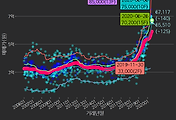 - 하단에 이어지는 거래량 막대차트(bar chart)와 함께 비교해보는 것이 좋습니다.