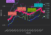 - 하단에 이어지는 거래량 막대차트(bar chart)와 함께 비교해보는 것이 좋습니다.
